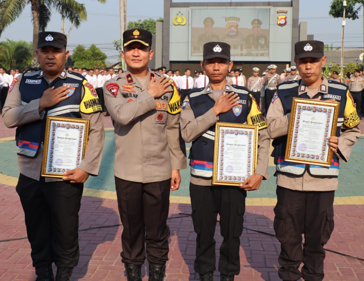 Penyerahan penghargaan atas apresiasi Kapolda Banten itu disaksikan para pejabat utama dan seluruh personel Polda Banten dilaksanakan pada Senin (30/10/2023).