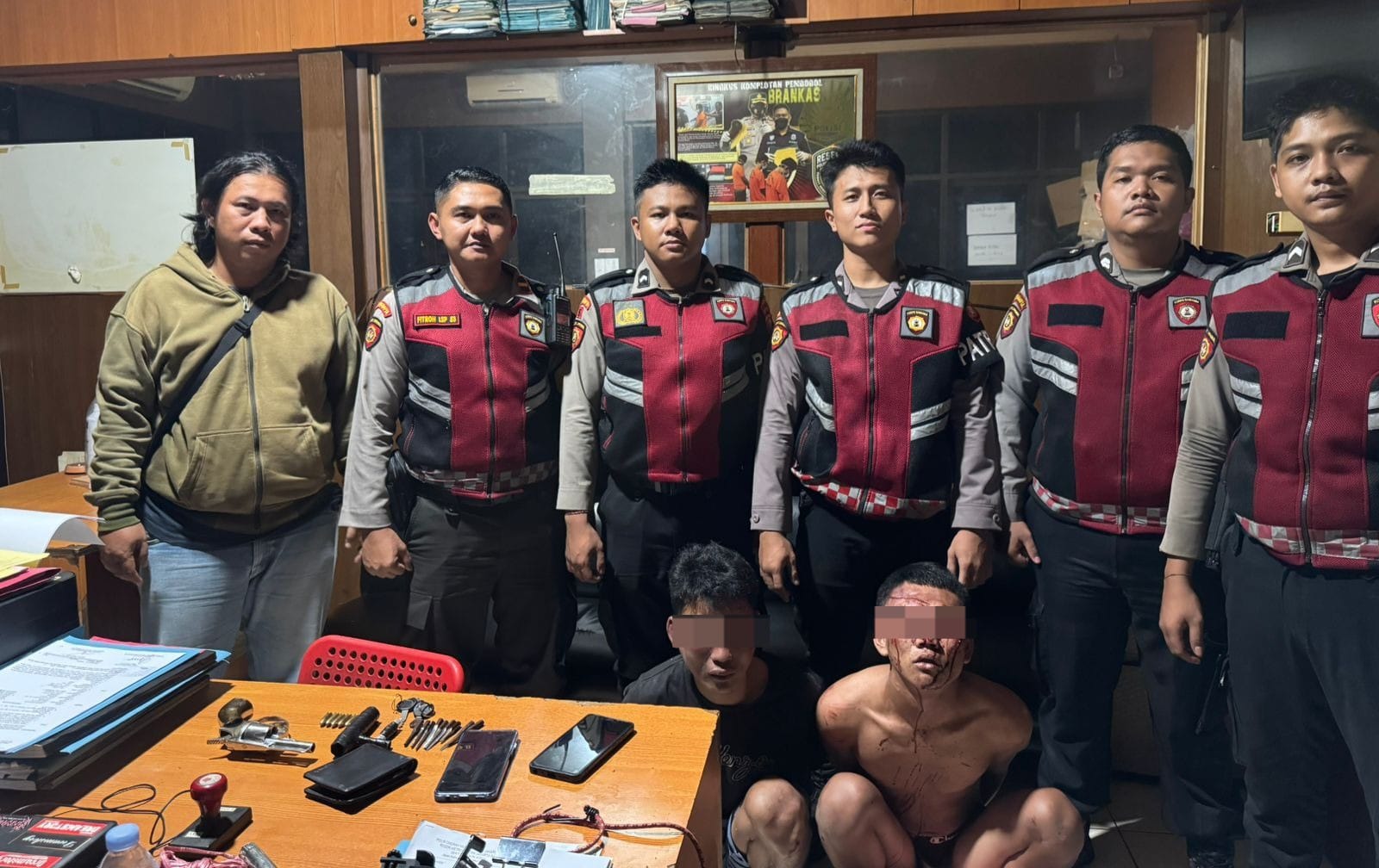 Sekitar pukul 03.40 WIB, personel Polsek Kebon Jeruk tiba di lokasi dan menerima penyerahan terduga pelaku berikut barang bukti untuk pemeriksaan lebih lanjut di Mapolsek.