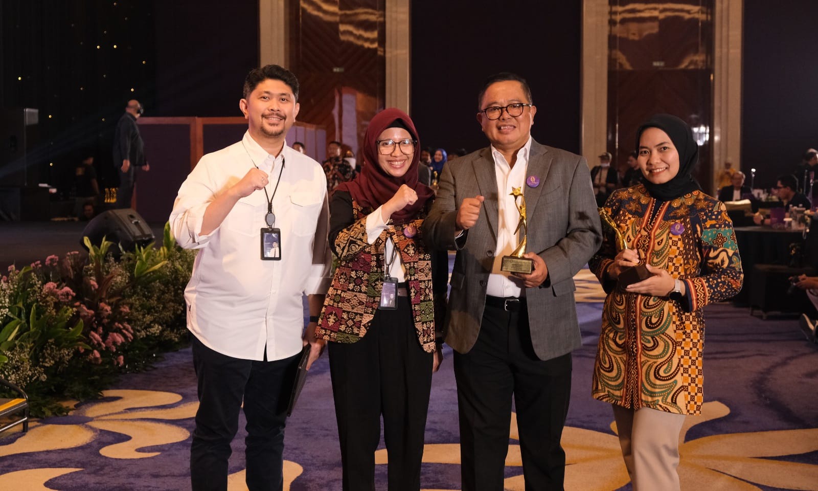 Direktur Pemasaran PT Jasaraharja Putera, Imam Hendrawan yang didampingi Human Capital & General Affair Group Head, Rikka Inri Dalosa dan Human Capital Dept Head Virly Churianti, menyampaikan rasa syukur sekaligus apresiasinya terhadap penghargaan yang diterima.