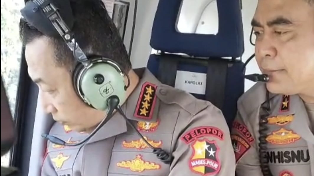 SUMUT: Kapolri Jenderal Listyo Sigit Prabowo bersama Ketua Umum Bhayangkari melakukan patroli udara menggunakan helikopter untuk memantau langsung situasi bencana banjir dan tanah longsor di wilayah Sumatera Utara, Senin (1/12/2025).