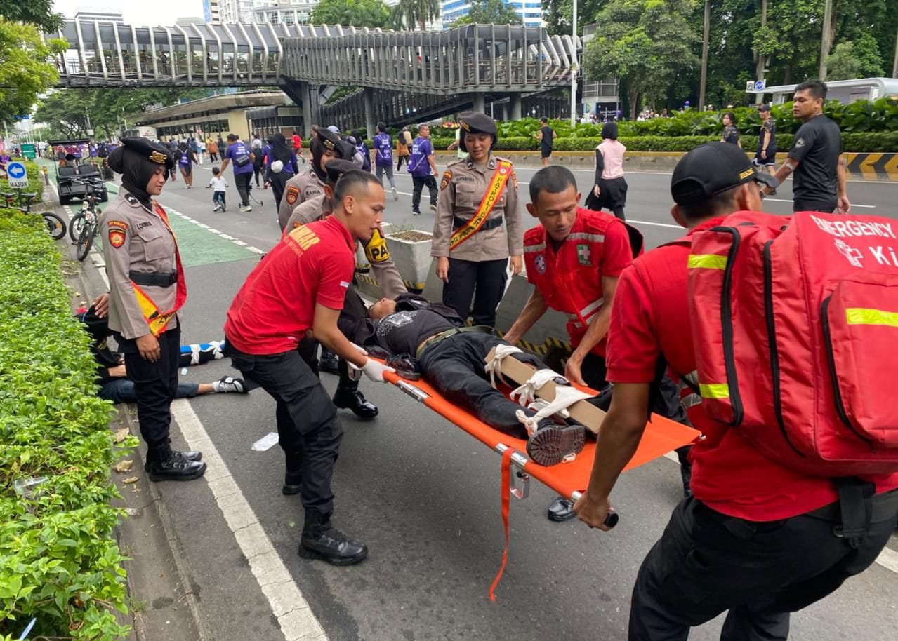 Di tengah pelaksanaan CFD, terjadi kecelakaan lalu lintas tunggal yang melibatkan satu kendaraan roda dua. Personel patroli bersepeda yang berada di lokasi langsung mengamankan TKP, memberikan pertolongan awal, dan membantu proses evakuasi korban ke RS Jakarta menggunakan ambulans Artha Graha.